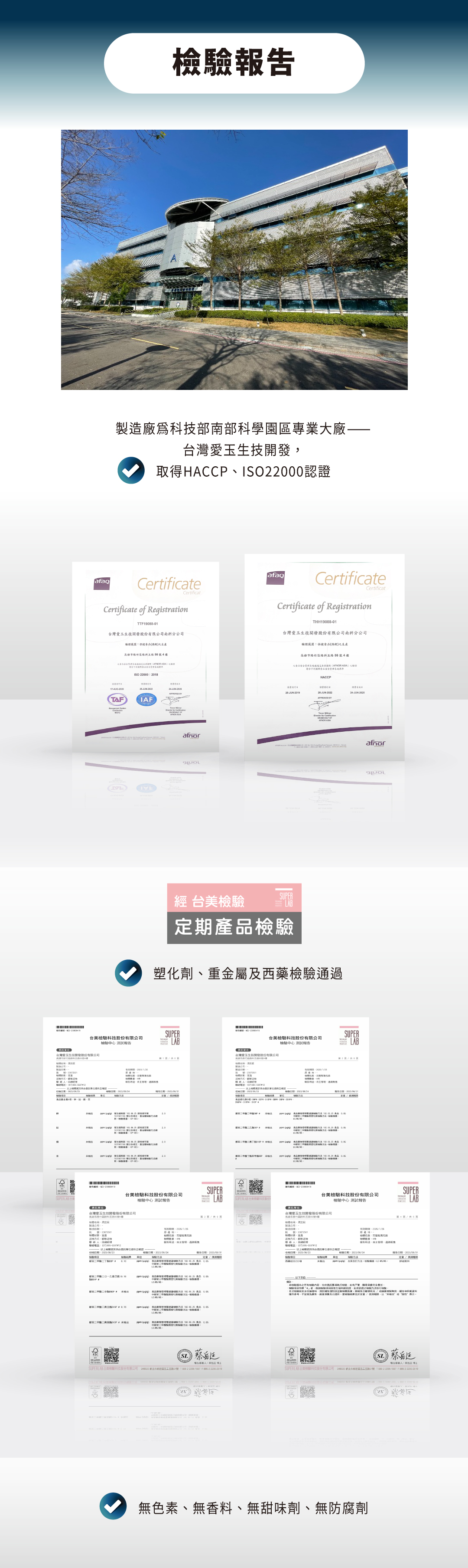 - 第三方西藥、重金屬、塑化劑、黃麴毒素檢驗合格