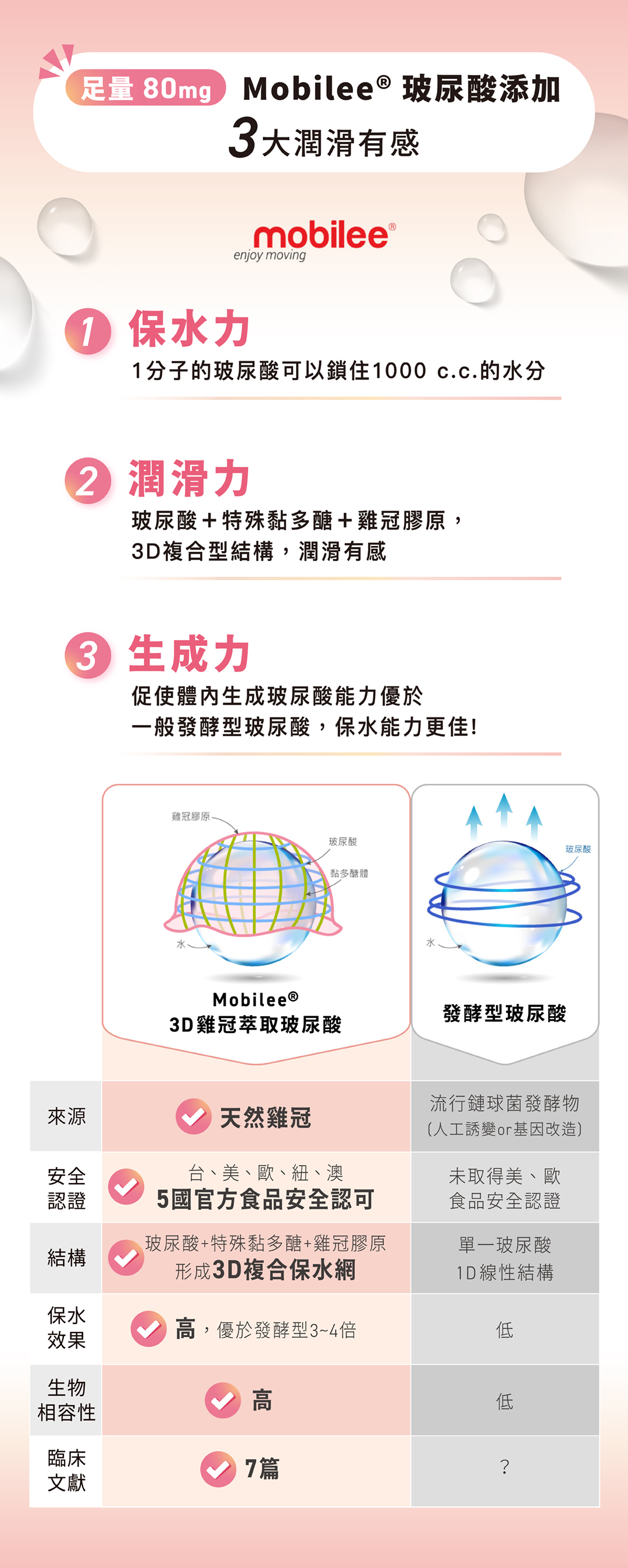 | 成分 | 純水、蔓越莓濃縮汁、蘋果濃縮汁、膠原蛋白、葡萄糖胺、雞軟骨素、雞冠萃取物(含玻尿酸)、甜菊糖苷(甜味劑)、香料、葡萄皮萃取物(含白藜蘆醇)、愛玉萃取物 |
